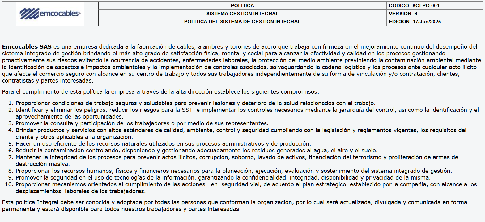 Este video te informará de todas las acciones que Emcocables SAS ha adelantado para el mejoramiento continuo de sus procesos. Te invitamos a consultarlo como asociado de nuestra compañía para permitir el fortalecimiento de nuestra alianza estratégica.